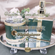 This set includes a custom decorative tray and a teal and silver decorative set.